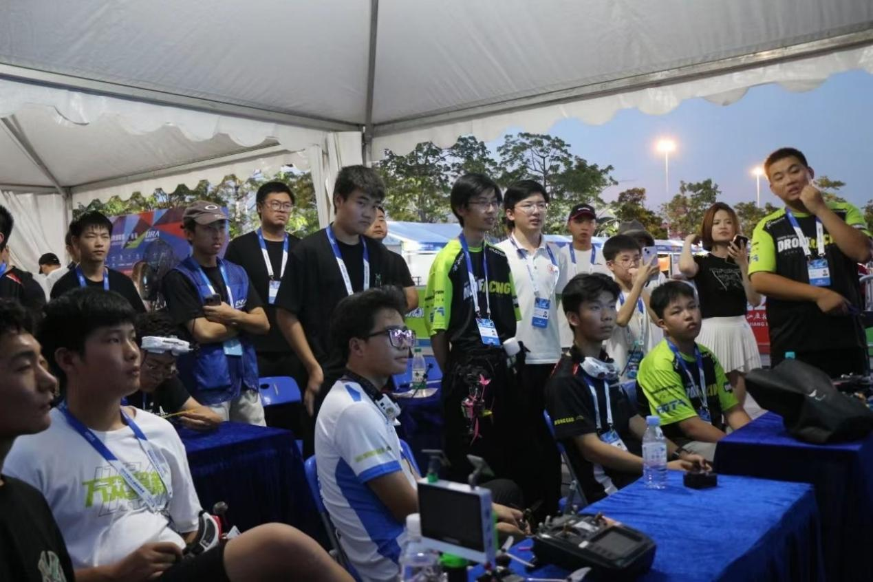 本网讯 2024年6月28日晚,中国无人机竞速联赛广州站于在中新广州知识城九龙湖广场开幕,吸引了来自全国近百家俱乐部选手参赛角逐。应组委会邀请,休闲与数字体育学院院长王晓东带队调研本站比赛。休闲与数字体育学院办公室主任叶祥财、数字体育教研室主任魏冉博士、数字体育教研室刘惠君老师、易子轩博士及4名无人机校队队员参加了调研工作。