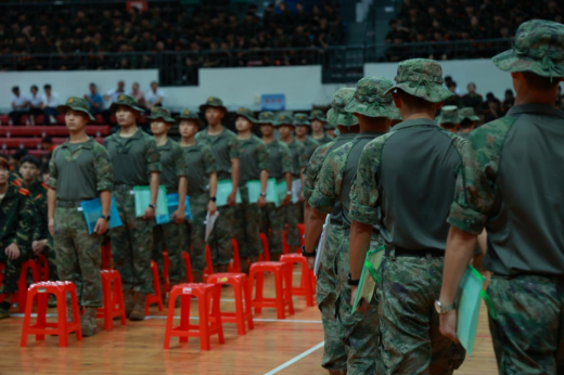 承训部队领导发言,他向新入学的同学们表示祝贺,同时也对参训同学和教官们提三点期望。首先,希望同学们认清军训的重要意义,作为一名优秀的大学生,不仅需要渊博的知识、健康的体魄和良好的品德,更需要磨砺百折不挠的意志和令行禁止的作风。其次,希望同学们珍惜军训的宝贵机会。军训不仅是对身体上的锻炼,更是对思想的升华、意志的磨炼、心灵的洗礼。希望同学们自觉以一个“兵”的角色去定位自己、要求自己。最后,希望承训教官担当起军训的光荣使命。坚定树立威武之师、文明之师的良好形象,树牢底线思维,加强风险管控,确保不发生任何问题。