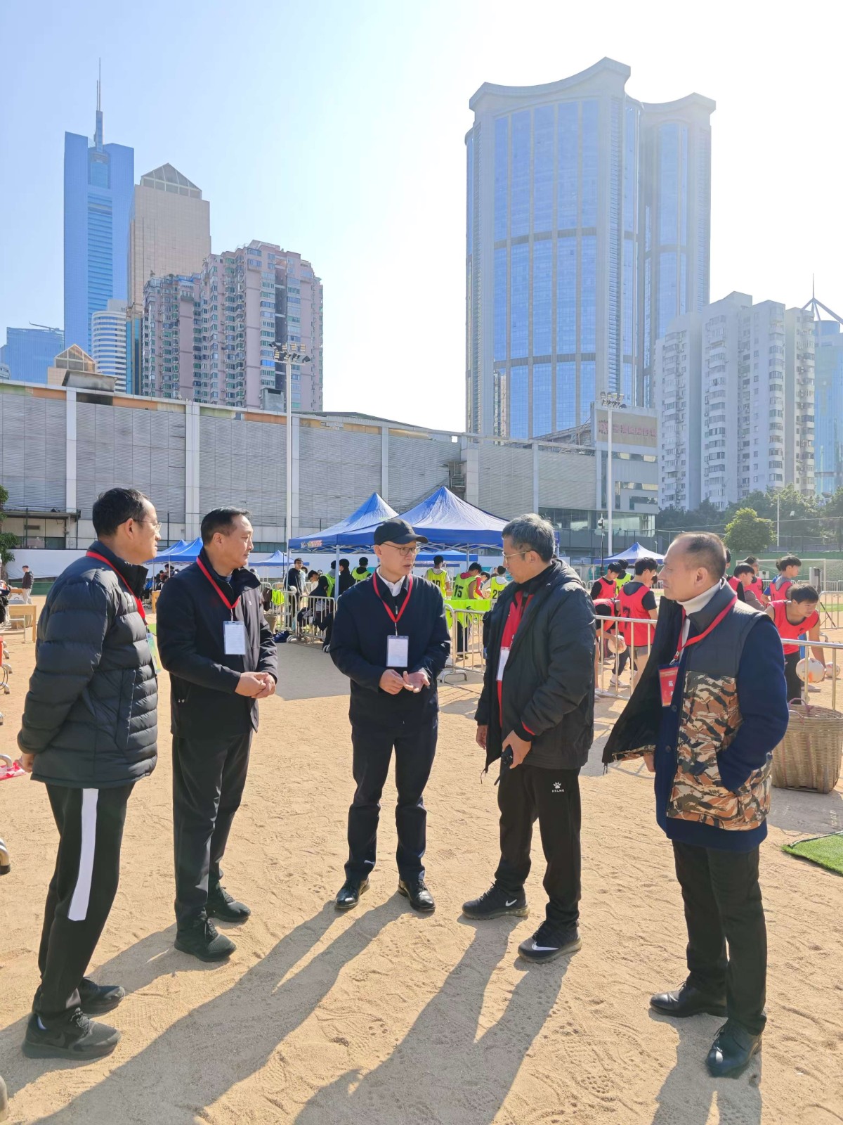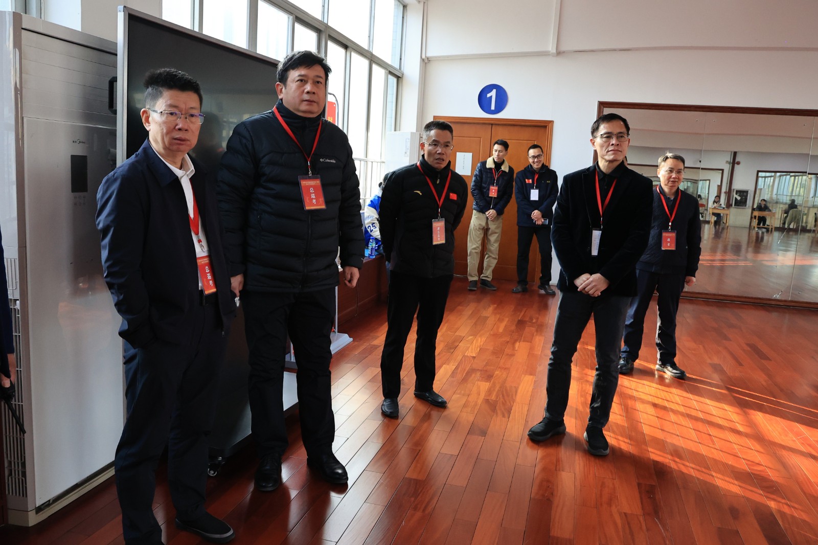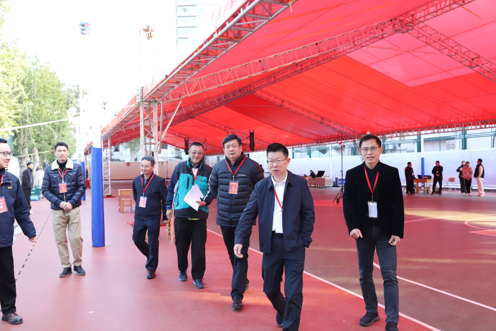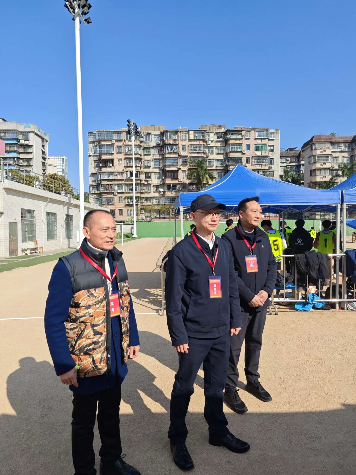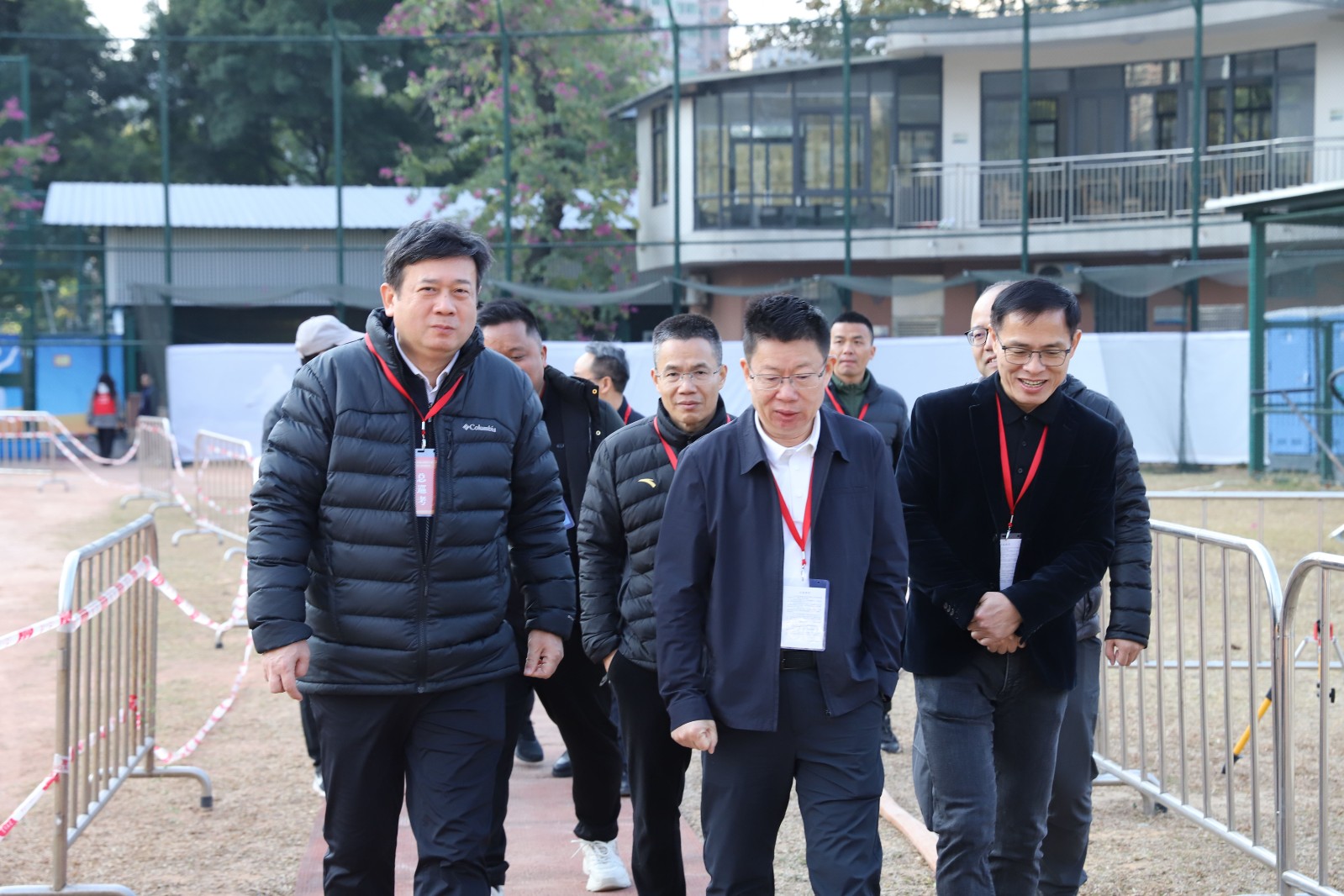 本网讯 1月10日,广东省2025年普通高考体育术科统考在我校有序进行。10日上午,党委书记米银俊、校长胡敏、副校长李裕和、副校长张育方等领导一行到达考试现场巡查考点工作,先后走访了篮球馆、篮球场、足球场、综合训练馆、棒垒球场等各考点,仔细查看考试组织情况、场地设施条件以及考生的考试状态。