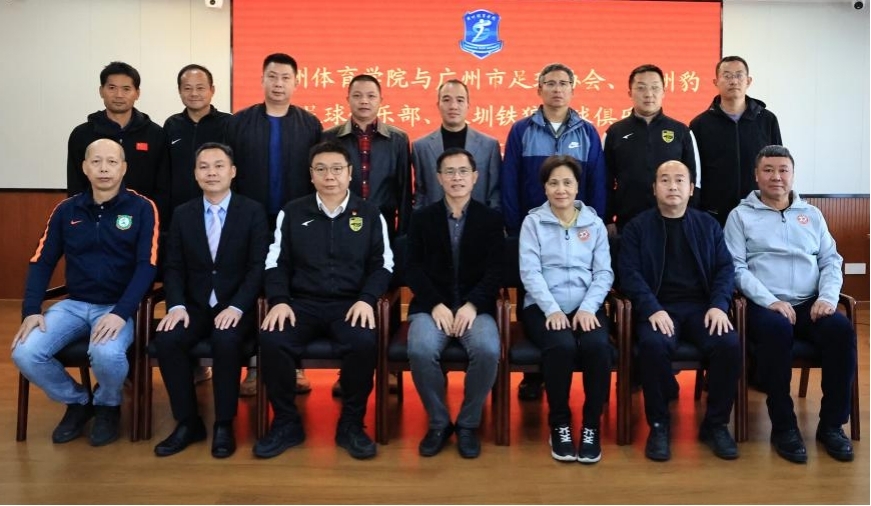 本网讯 为深入学习贯彻习近平总书记关于足球工作的重要指示批示精神,全面落实《中国足球改革发展总体方案》《中国青少年足球改革发展实施意见》等国家重大战略部署,助力广东省足球事业高质量发展,1月20日上午,广州体育学院与广州市足球协会、广东广州豹足球俱乐部、深圳南岭铁狼足球俱乐部在广州体育学院933会议室举行了战略合作框架协议签约仪式,广州体育学院副校长李裕和、广州市足球协会党支部书记刘杏薇、广东广州豹足球俱乐部总经理王朝阳、深圳南岭铁狼足球俱乐部主席张育凡、足球学院领导班子以及各方代表参加了会议。签约仪式由足球学院副院长麦全安主持。