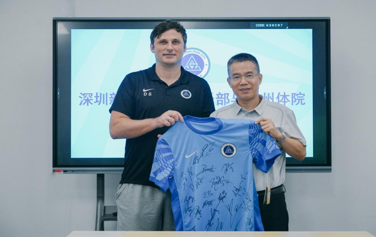 深圳新鹏城足球俱乐部体育总监丹尼尔·施坦茨(Daniel Stenz)同志强调,俱乐部秉承本土化的发展方针,通过完善青少年足球梯队建设、吸纳本地优秀球员、深耕社区足球文化,逐步塑造一支具有深圳特色的球队。同时,俱乐部从全局出发,系统性地抓好训练工作,统筹体能储备、技术细节、战术体系与心理建设,形成科学、完整、可持续的竞技提升闭环。与广州体育学校的校企合作标志着俱乐部发展质的飞跃,更期望通过此合作引进高水平运动员,为俱乐部的发展贡献力量。