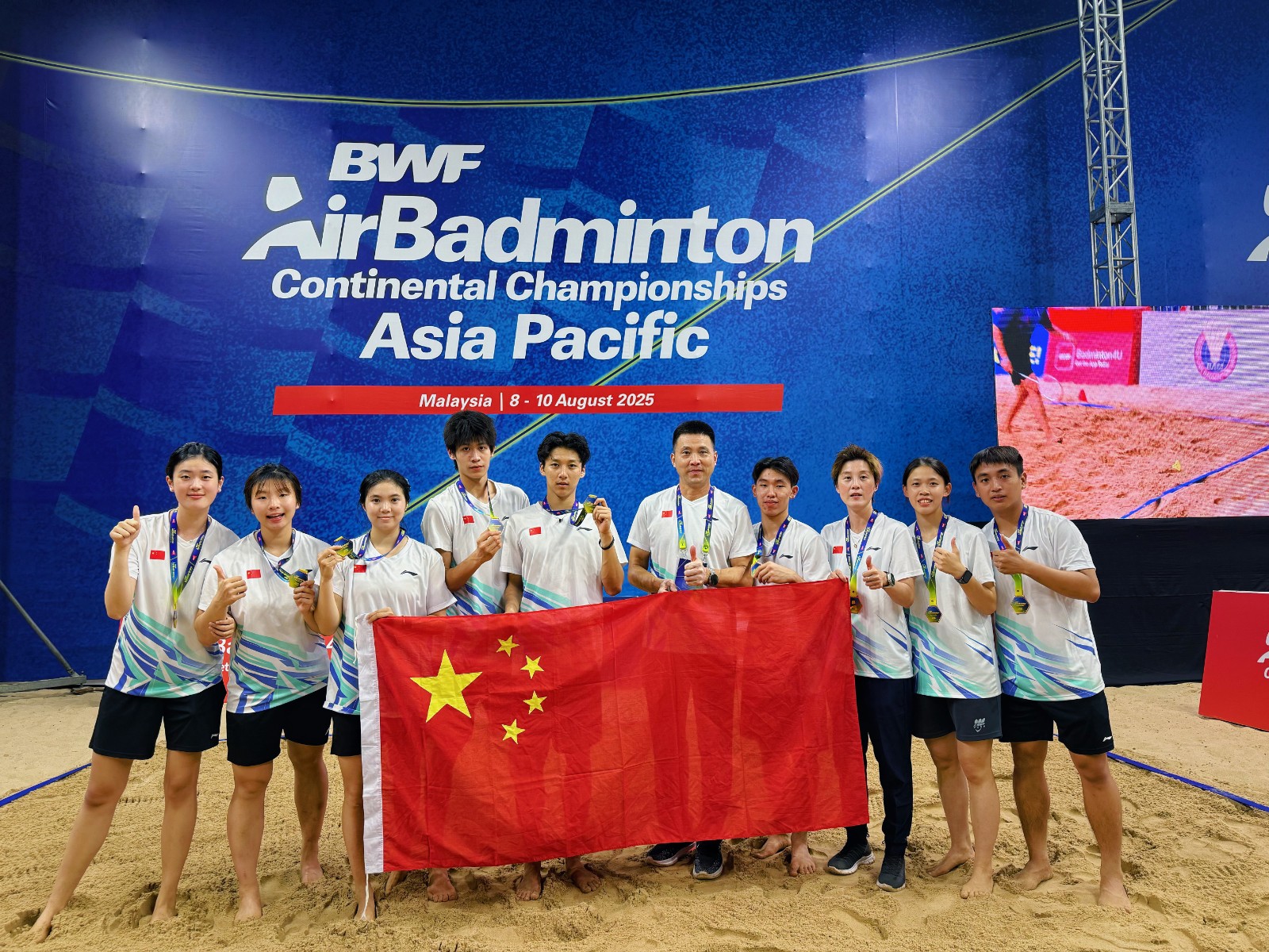 本网讯 8月10日,亚太户外羽毛球锦标赛在马来西亚波德申落下帷幕,广州体育学院学子代表中国队参赛并斩获团体赛铜牌,并获得了将于2025年11月在阿联酋举行的户外羽毛球世界杯参赛资格!